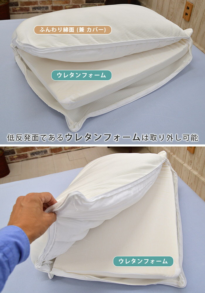 ピローケースも兼ねている綿面はお家でお洗濯可能なのでいつでも清潔に使っていただけます。