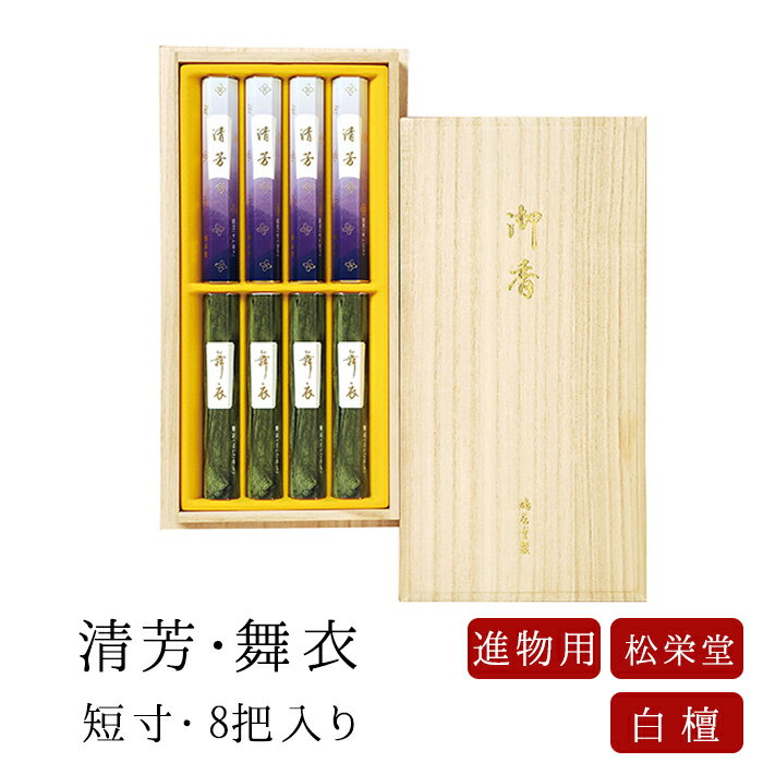 [クーポン発行中] 【鳩居堂】 お線香 線香 お香 贈答用 進物 送料無料 進物線香 清芳・舞衣 短寸 8把入 桐箱 煙の少ない線香 少煙 老山白檀 のし対応 喪中見舞い 喪中はがき 領収書OK 京都 沈香 香木 天然香料アロマ 白檀